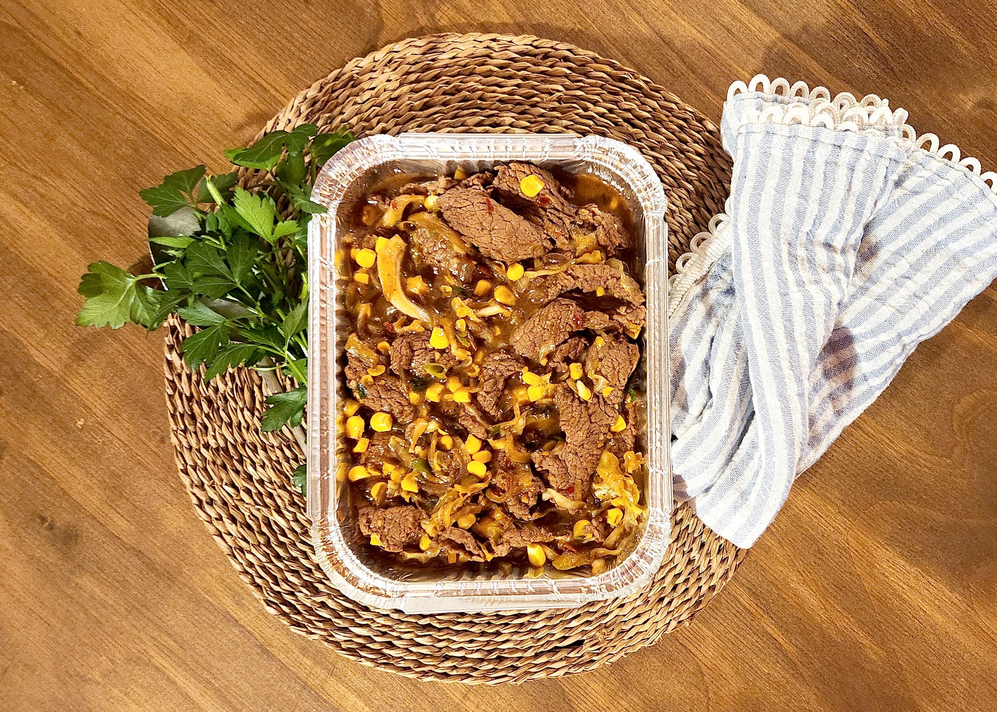 A South African twist on a Japanese favourite. Our Teriyaki Ostrich is made with tender strips of locally farmed ostrich, stir-fried with a colourful mix of seasonal veggies — think peppers, onions, carrots, corn, cabbage, bok choy (and whatever else is looking fresh and happy that week). Everything’s tossed in a glossy homemade teriyaki sauce with soy, ginger, garlic, and a touch of sweetness.